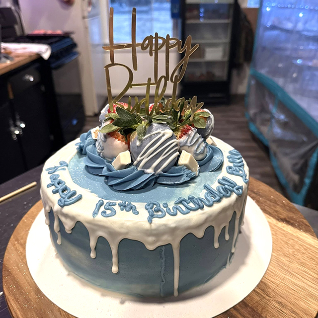 We make baked cheesecake, birthday & wedding cakes, truffles, candies, cookies, pastries, cupcakes, cinnamon rolls, fudge, and more.