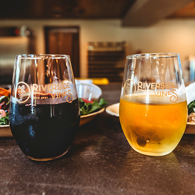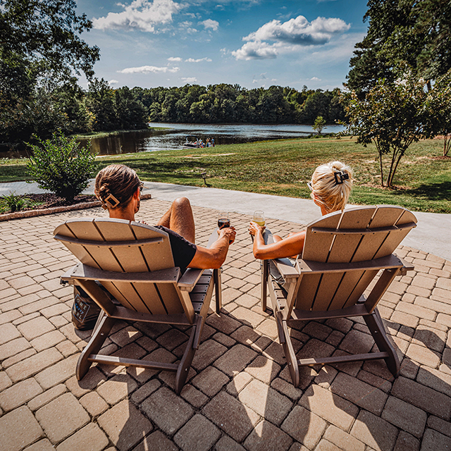 Overlooking Lake Chesdin in the heart of Virginia, our waterfront Tasting Room and event spaces offer the perfect blend of grandeur & comfort for any occasion. Escape into the countryside for a glass of estate-grown wine, fine cuisine to share with friends, private events, or a sunset over the lake, and enjoy the drive through our 170-acre farm & vineyard on your way down to see us.
